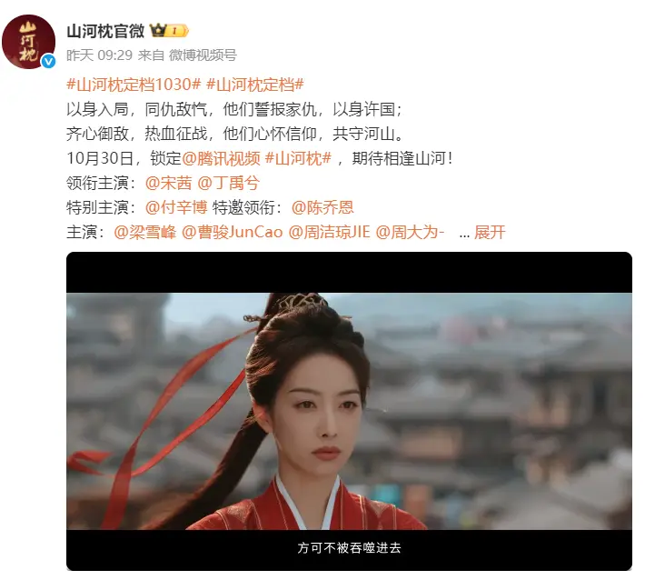 电视剧《山河枕》将会在10月30日正式上线,这部观众期待了很久的古装剧终于定档。